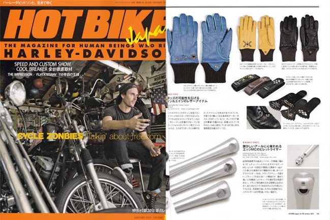 雑誌クラブハーレー別注でスタッズグローブを制作させていただきました。